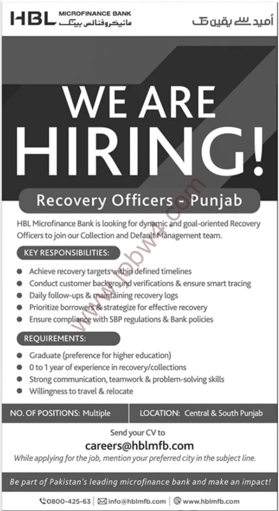 These positions are suitable for both entry-level candidates and experienced professionals. If you are looking for jobs near me in the banking sector, these new govt jobs 2025 in HBL are a great fit.
