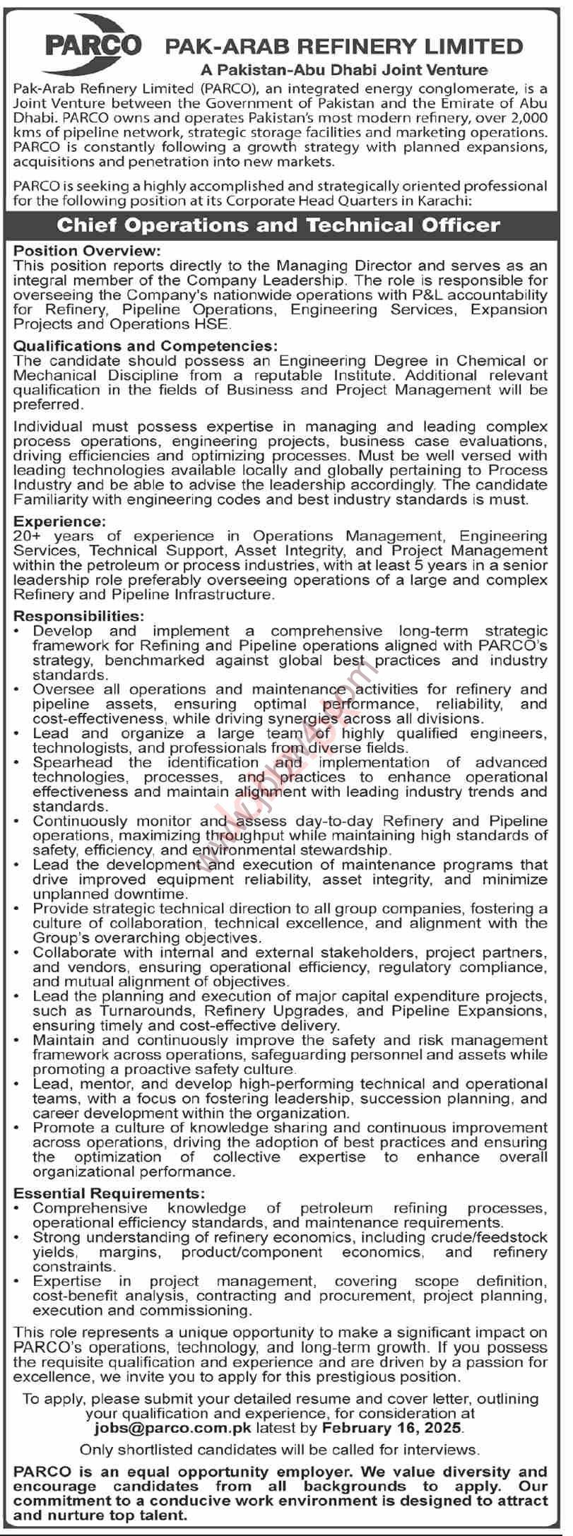 The Pak Arab Refinery Limited PARCO Job in Pakistan Bahawalpur 2025 Apply Online is a great chance for candidates who are looking for govt jobs 2025, new jobs 2025, or long-term government jobs 2025.