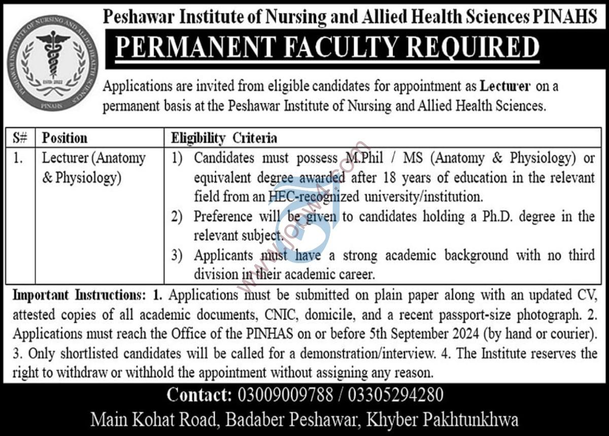 Are you looking for govt jobs 2025 in the education and health sector? The Peshawar Institute of Nursing & Allied Health Sciences has announced new jobs 2025 for skilled and motivated candidates. These are official government jobs that offer excellent career growth, job stability, and professional opportunities.